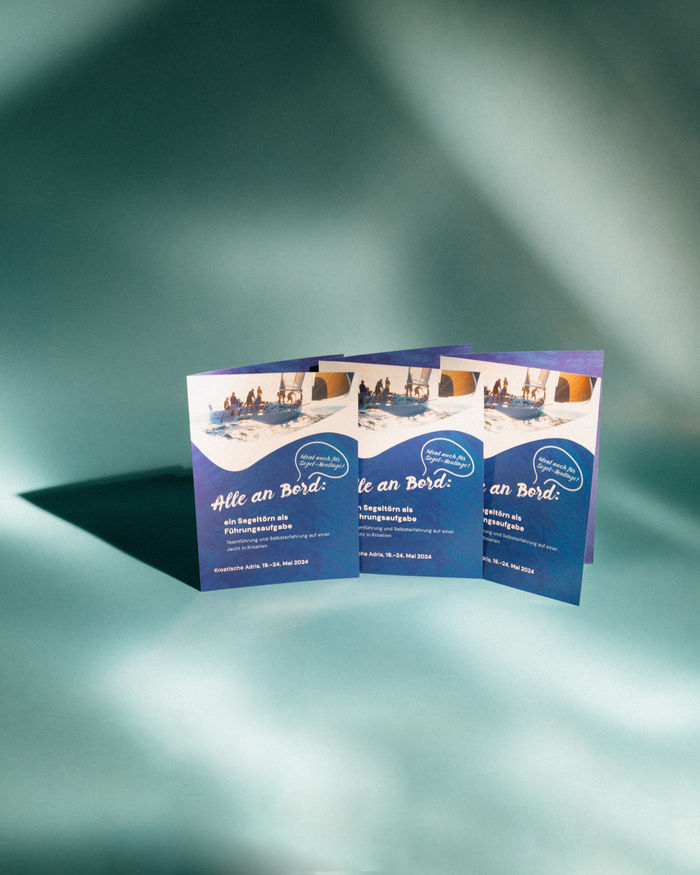 Analog hybrides Grafikdesign und Druckabwicklung für einen Informationsfolder für ein Segelseminar für Führungskräfte.